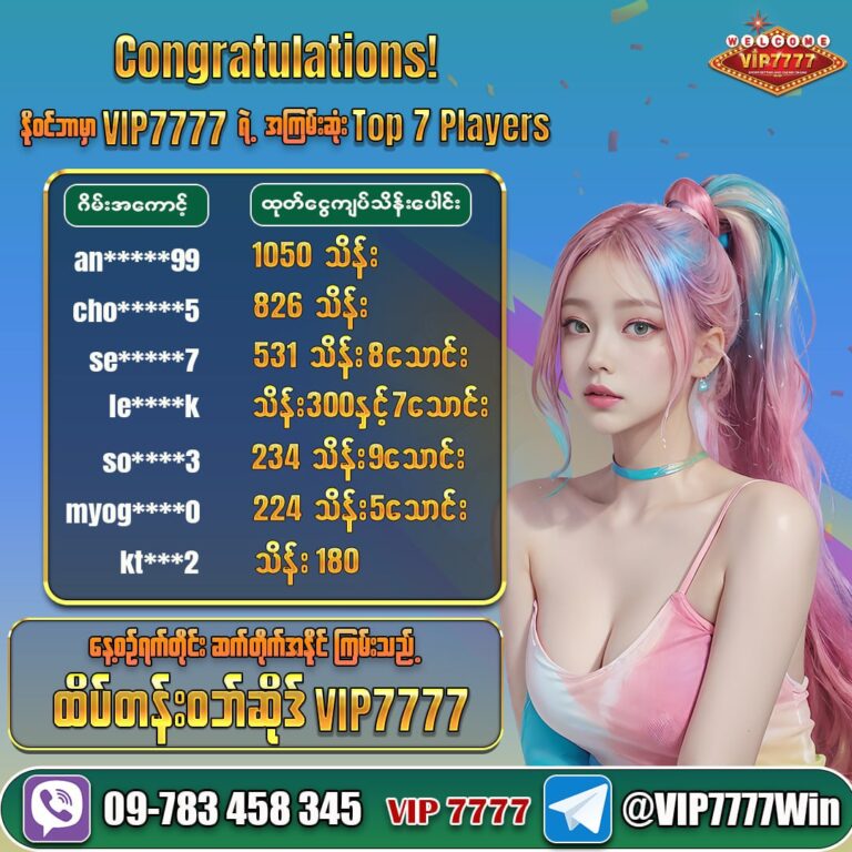 ကျွန်ုပ်တို့၏ထိပ်တန်း Websiteဖြစ်သော VIP7777တွင် စိတ်လှုပ်ရှားဖွယ် ပုံစံအသစ်များကို ခံစားကြည့်ပါ!