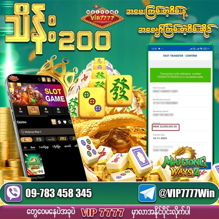 အထူးသဖြင့် Slot ဂိမ်းဝါသနာပါသူတွေအတွက် PP ဂိမ်းတွေကို စမ်းကစားကြည့်ဖို့ အထူးအကြံပြုလိုပါတယ်။မြန်မာနိုင်ငံမှာတော့ ဒီဂိမ်းအမျိုးအစားအားလုံးကိုကစားနိုင်တဲ့လိုင်စင်ရဝဘ်ဆိုက် VIP7777 ရှိပါတယ်။အားလုံးပဲ ပျော်ရွှင်စရာ ဂိမ်းကစားချိန်လေးတွေ ပိုင်ဆိုင်နိုင်ကြပါစေ။
