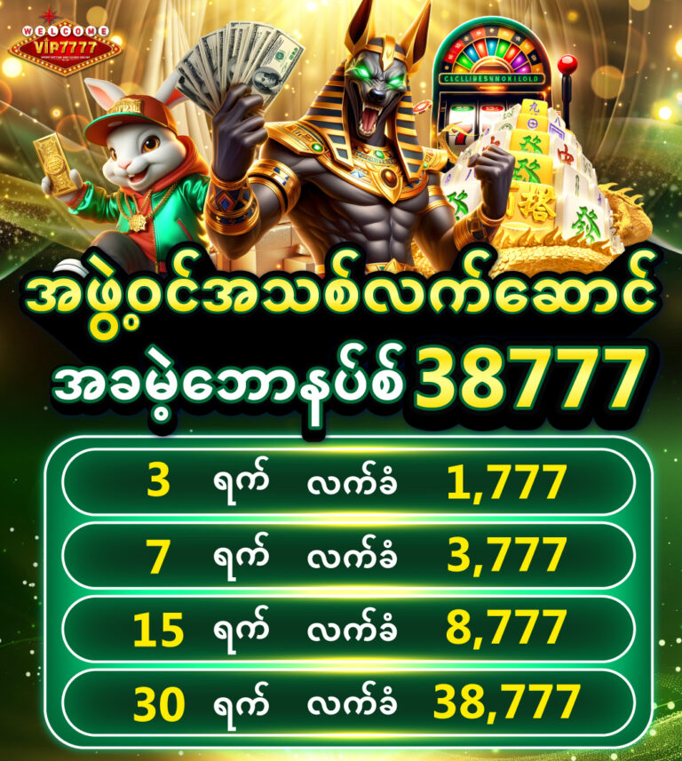 Free Spins: Scatter symbols 3 ခု (သို့) ထို့ထက်ပို ရရှိပါက Free Spins ကို ရရှိမည်ဖြစ်သည်။